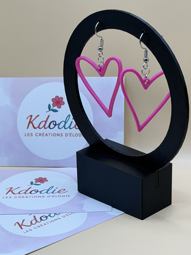 À savoir sur les éléments couleur inoxLes crochets utilisés sont en acier inoxydable, ce qui leur offre une bonne résistance à l’humidité et au ternissement.Cependant, la finition couleur inox peut légèrement évoluer avec le temps selon l’usage (contact avec la peau, produits cosmétiques, parfum). Cela n’altère pas la solidité du bijou, uniquement l’aspect visuelL’impression 3D et le PLA J’utilise principalement du PLA, un plastique biosourcé et biodégradable, fabriqué à partir de ressources naturelles comme le maïs ou la canne à sucre C’est une matière respectueuse de l’environnement, sans substances nocives, qui allie légèreté, solidité et esthétisme. PLA est très léger à porter