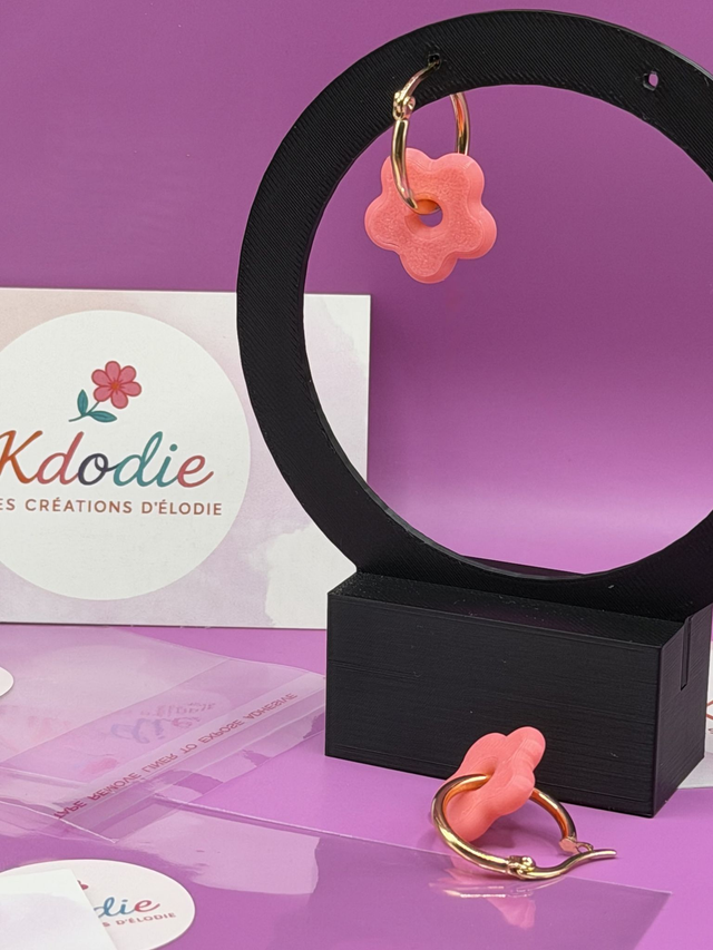 À savoir sur les éléments dorés:Les apprêts dorés utilisés ne sont pas en or massif. Leur finition peut évoluer naturellement avec le temps et l’usage : contact avec la peau, humidité, parfum, produits cosmétiques…Avec ces facteurs, le doré peut s’atténuer et prendre une teinte cuivrée.À savoir sur les crochets couleur inox. Les crochets utilisés sont en acier inoxydable, ce qui leur offre une bonne résistance à l’humidité et au ternissement.Cependant, la finition couleur inox peut légèrement évoluer avec le temps selon l’usage (contact avec la peau, produits cosmétiques, parfum). Cela n’altère pas la solidité du bijou, uniquement l’aspect visuel. L’impression 3D et le PLA J’utilise principalement du PLA, un plastique biosourcé et biodégradable, fabriqué à partir de ressources naturelles comme le maïs ou la canne à sucre C’est une matière respectueuse de l’environnement, sans substances nocives, qui allie légèreté, solidité et esthétisme. PLA est très léger à porter